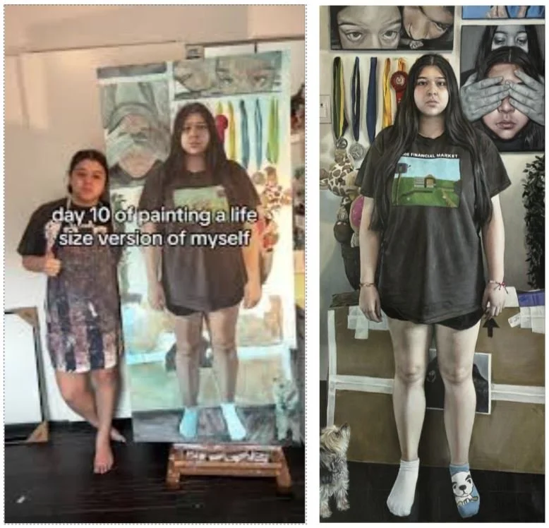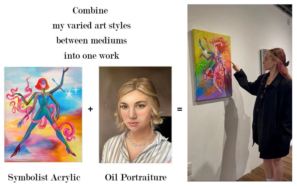 The Screenshot from video while I was explaining symbolism in my painting, this painting could be put on a ~ 6 ft tall canvas.